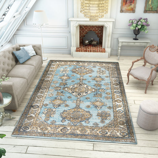 Features Pile Height: Medium Pile - 6mm Primary Color: Beige/ Blue Accent Colors: Green, Navy Style: Oriental Collection: The Traditions Collectio...