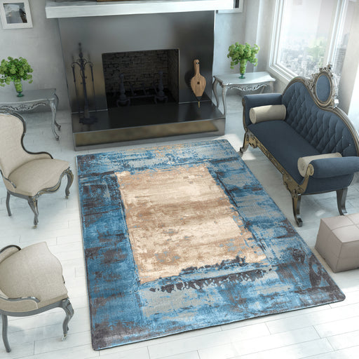 Features Pile Height: Medium Pile - 10mm Primary Color: Beige Accent Colors: Blue, Ivory Style: Modern / Abstract Collection: The Potomac Collect...