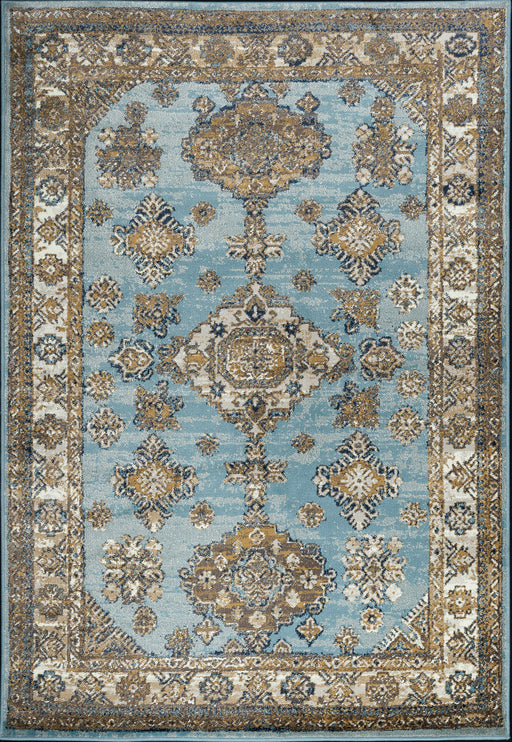 Features Pile Height: Medium Pile - 6mm Primary Color: Blue Accent Colors: Navy, Ivory, Yellow Style: Oriental Collection: The Traditions Collecti...