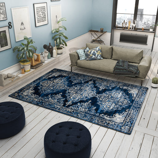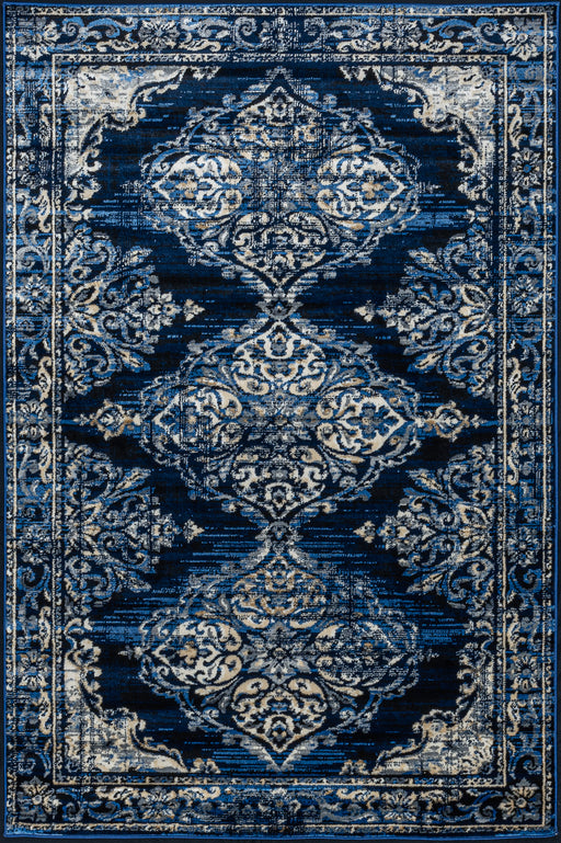 Features Pile Height: Medium Pile - 6mm Primary Color: Navy Blue Accent Colors: Blue, Ivory, Yellow Style: Oriental Collection: The Traditions Col...