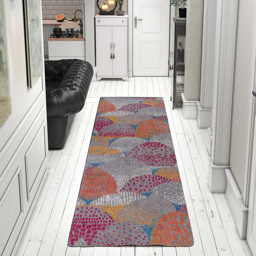 Features Pile Height: Flatweave Primary Color: Multicolor Accent Colors: Orange, Aqua, Purple Style: Geometric, Modern Collection: The Exquisite C...