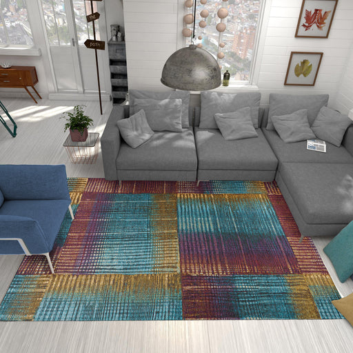 Features Pile Height: Flatweave Primary Color: Multicolor Accent Colors: Yellow, Purple, Teal Style: Modern, Geometric Collection: The Exquisite C...
