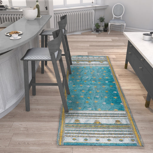 Features Pile Height: Flatweave Primary Color: Turquoise Accent Colors: Gold, White Style: Vintage, Tribal  Collection: The Graceful Collection Fr...