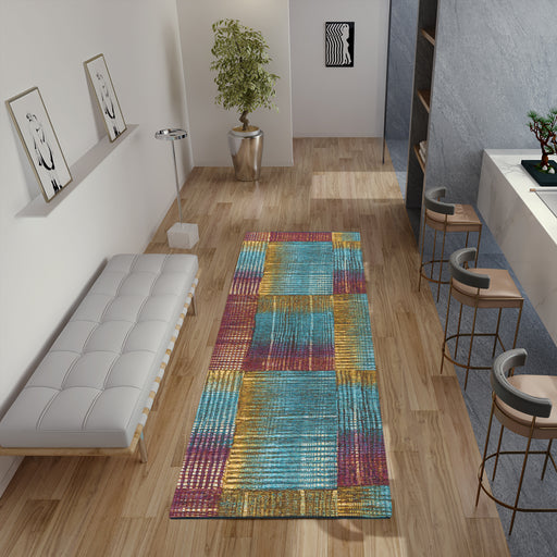 Features Pile Height: Flatweave Primary Color: Multicolor Accent Colors: Teal, Gold, Beige, Turquoise Style: Modern, Abstract Collection: The Exqu...