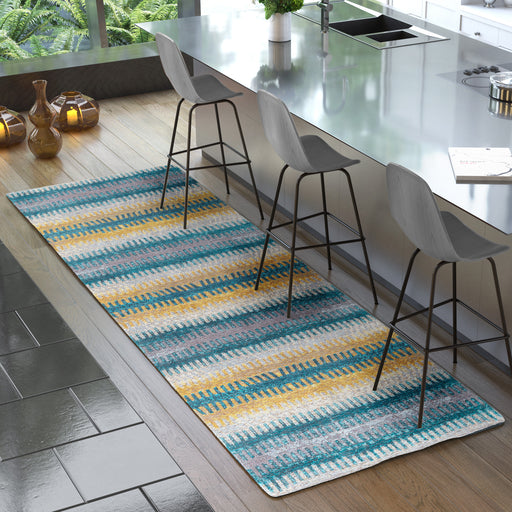 Features Pile Height: Flatweave Primary Color: Turquoise Accent Colors: Yellow, Gray, Ivory Style: Modern, Geometric Collection: The Graceful Coll...